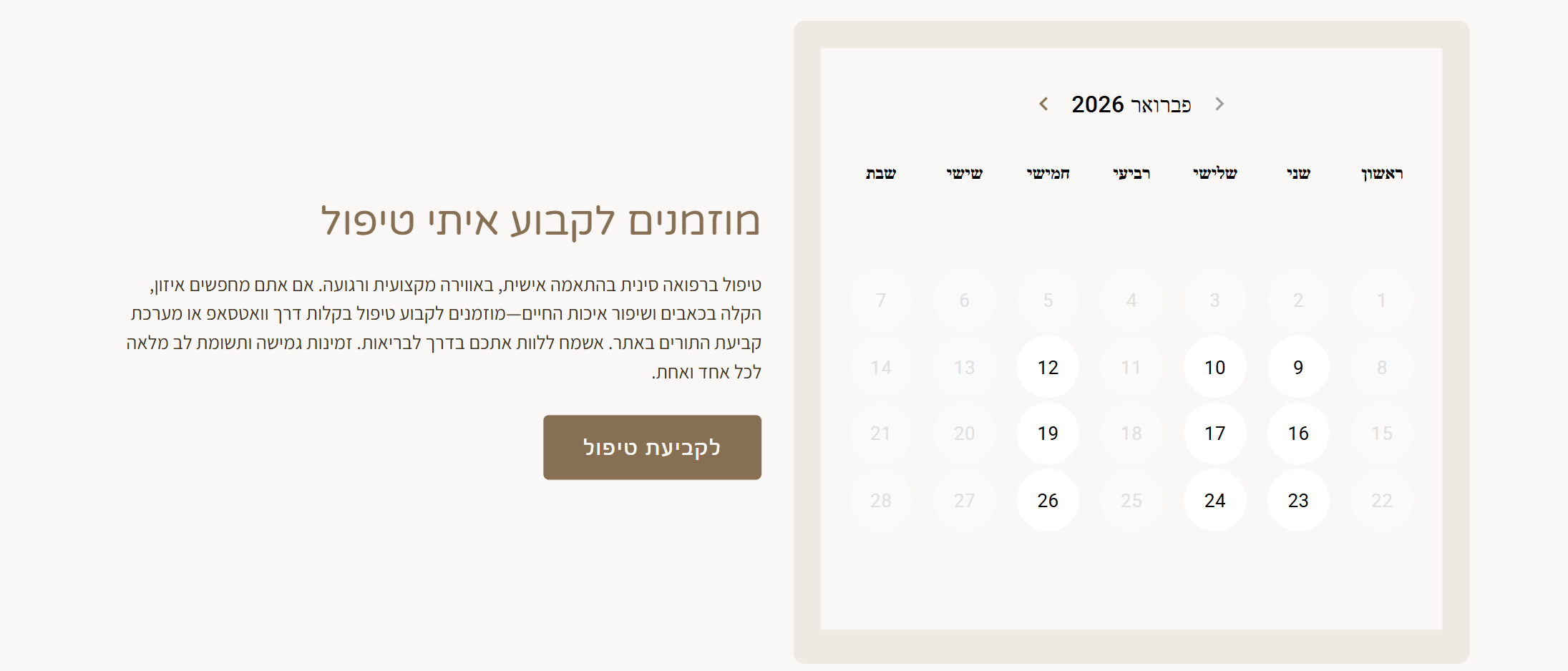 Ezra approached me with the goal of creating a landing page that would support his work as a Chinese medicine practitioner, strengthen his online presence, and allow patients to book treatments easily and independently—without the need for a phone call or waiting for a response. Together, we mapped out the key needs and priorities, viewing the page from the perspective of a patient who may be unfamiliar with the world of Chinese medicine and needs clear, calming guidance. In collaboration with designer Yosef Allen, we developed a clean, gentle visual language and a set of custom icons that reflect the clinic’s minimalist and grounded approach. The page was built using GeneratePress Pro with custom HTML, CSS, JS, and PHP, and includes a booking system that shows real-time availability, allows appointments to be scheduled directly through the site with email notifications, and offers an additional option to get in touch via WhatsApp. Today, Ezra has a landing page that creates a strong sense of presence and stability for his business, is used in email signatures and professional groups, and serves as an emotional and business foundation for future growth and promotion.